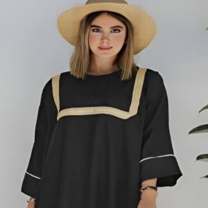مانتو ساحلی ابر و بادی نواردوزی از جنس پارچه ابر و بادی است و دور یقه لباس نواردوزی شدع.این مانتومناسب تابستان و ایام محرم است. قد مانتوی ساحلی ۱۱۵و عرض آن ۶۰ و مناسب سایزهای۳۶تا۴۸است و مانتو آستین های مغزی دوزی دارد و سه ربع است. پایین مانتوچاک دار بوده و تک رنگ مشکی است.
