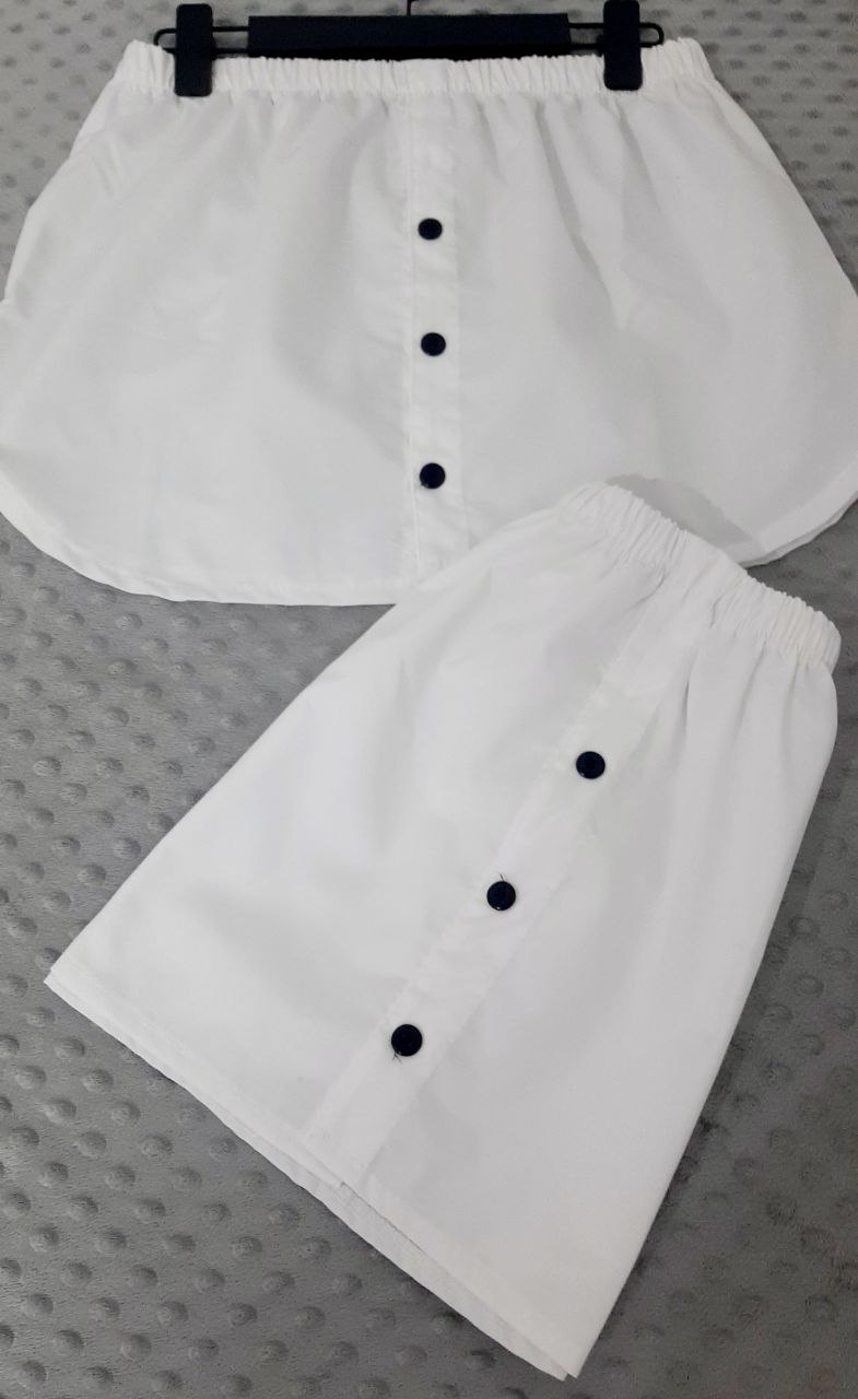 دامنک زنانه سفید با دکمه های مشکی موجود در سایز 36 تا48 فری سایز در بوتیک شونزده با جنس داکرون درجه یک موجود می باش و شما می توانید به راحتی خریداری کنید.