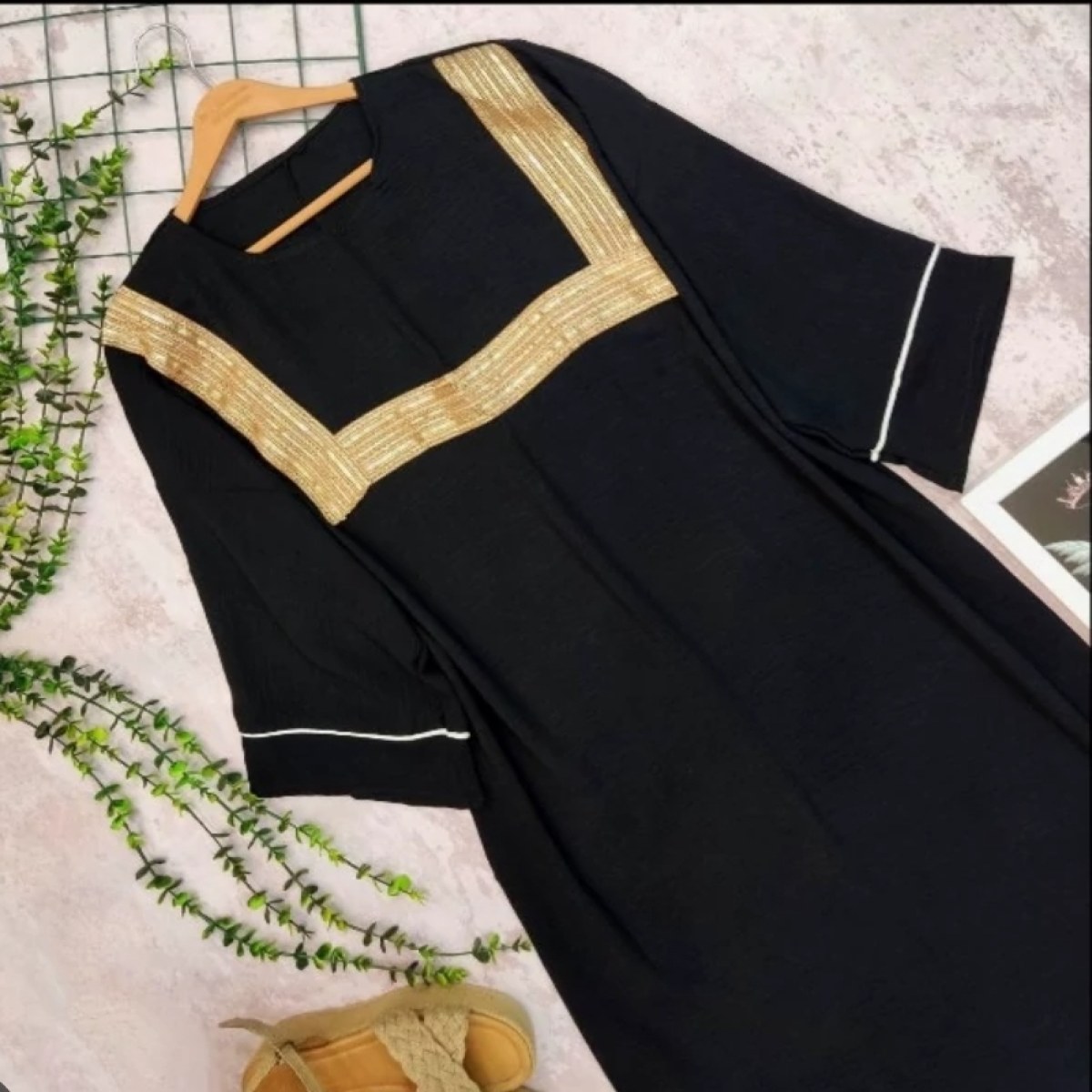 مشکی یقه نوار دوزی طلایی |